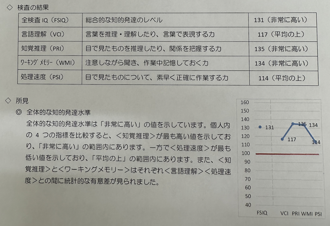 - 全体像:知的発達水準は「非常に高い」